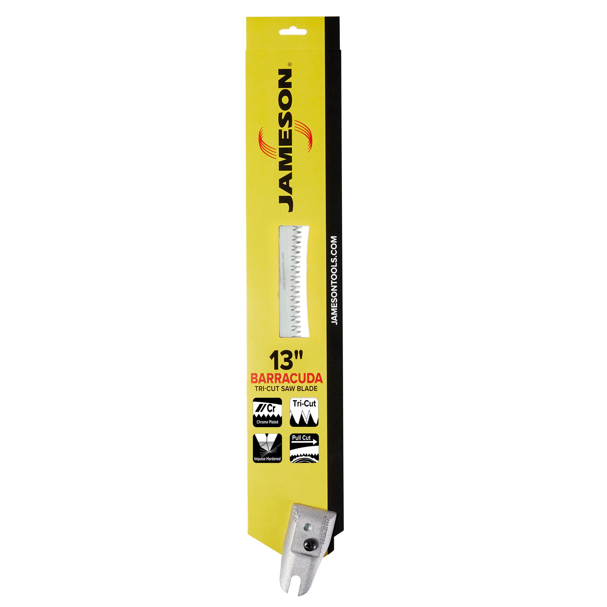 13 in. Barracuda™ Tri-Cut Saw Blade with Universal Saw Blade Adapter (SB-UC). Adapter allows blade to connect to any manufacturer’s universal head hot stick or Jameson’s UA-1 Adapter. Tri-cut edge provides a quicker, cleaner cut with less wear on the blade than traditional blades.