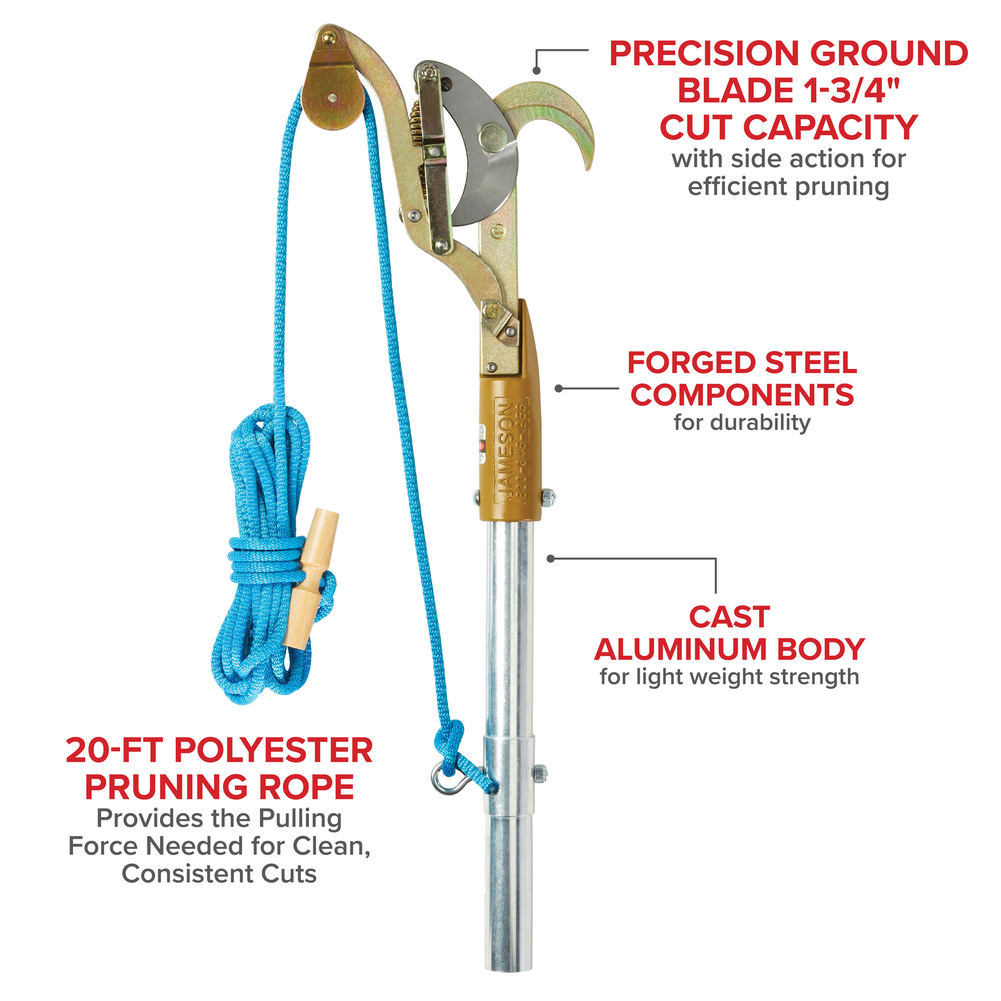 Introducing our premium telescoping pole, spanning from 85 to 192 inches. Crafted from durable aluminum, featuring a unique tri-oval (non-circular) cross-section designed to minimize flex. The double-lock system ensures a secure hold, while the soft plastic handle provides comfort. Plus, its female ferrule end makes it compatible with all Jameson attachments, making it the most versatile option available. Kit includes Jameson PH-14-PKG 1.25″ Pruner and PS-3FPS1 13″ Tri-Cut Saw Head.